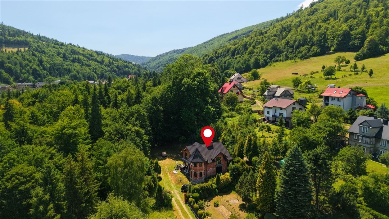 Nieruchomość znajduje się na dużej działce o powierzchni 1462 m², otoczonej lasem i górskim krajobrazem. To miejsce zapewnia ciszę, prywatność i piękne widoki przez cały rok.