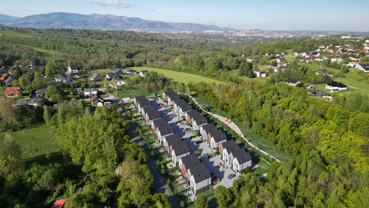 Projekt idealnie łączy bliskość natury z wygodą miejskiego życia. Otoczenie osiedla to cisza, zieleń oraz przestrzeń sprzyjająca relaksowi, a jednocześnie centrum Bielska-Białej znajduje się zaledwie kilka minut jazdy stąd. Kameralny charakter dzielnicy zachęca do aktywności takich jak spacery z psem, jazda na rowerze czy uprawianie sportów na świeżym powietrzu.