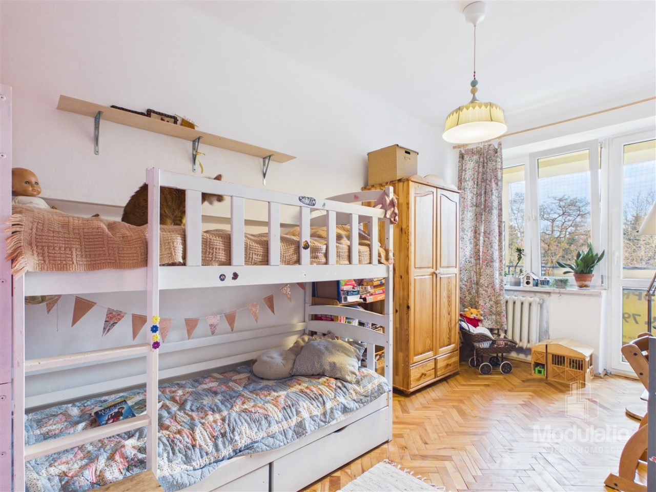 Całe mieszkanie wyróżnia się charakterem i designem, który stanowi subtelne nawiązanie do stylu minionych lat. Ten świadomie stworzony klimat nadaje mu niepowtarzalną, wyjątkową atmosferę. Ono nie próbuje być nowoczesne – ono świadomie ma styl, który tworzy odczucie przestrzeni, jakiego dziś już się nie spotyka.