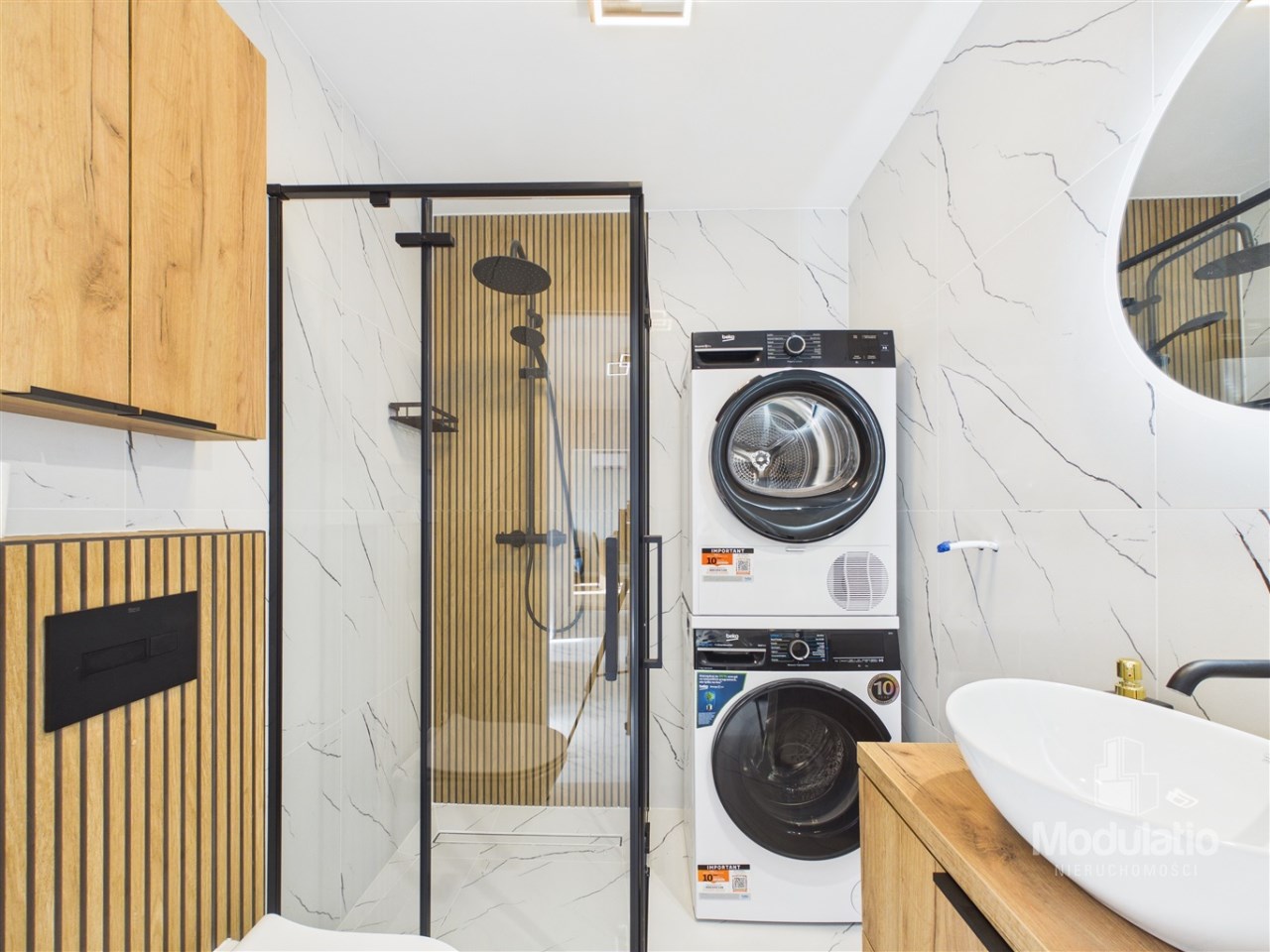 łazienka z pralką i suszarką