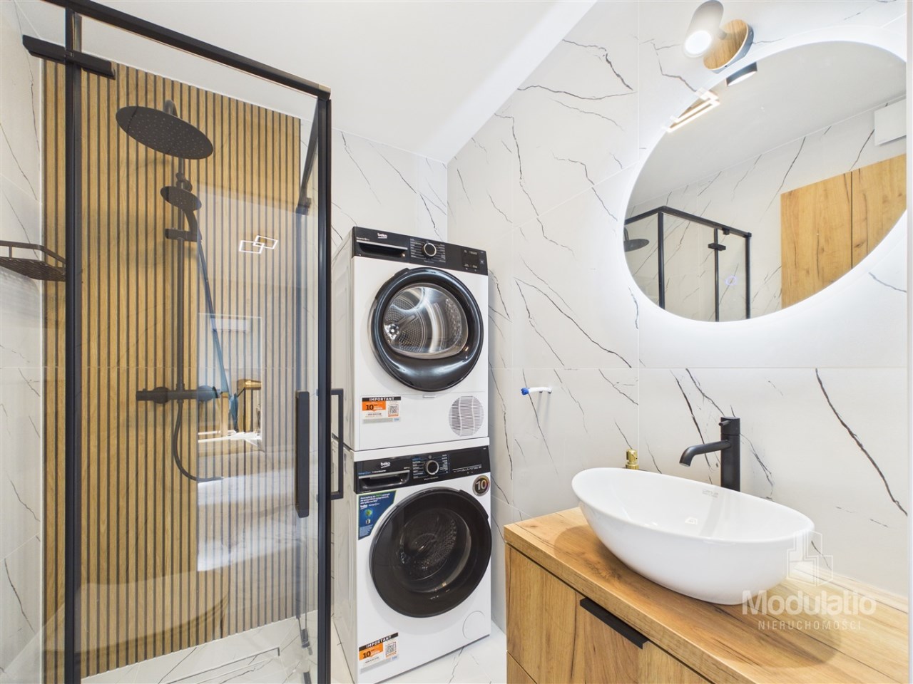 łazienka z pralką i suszarką