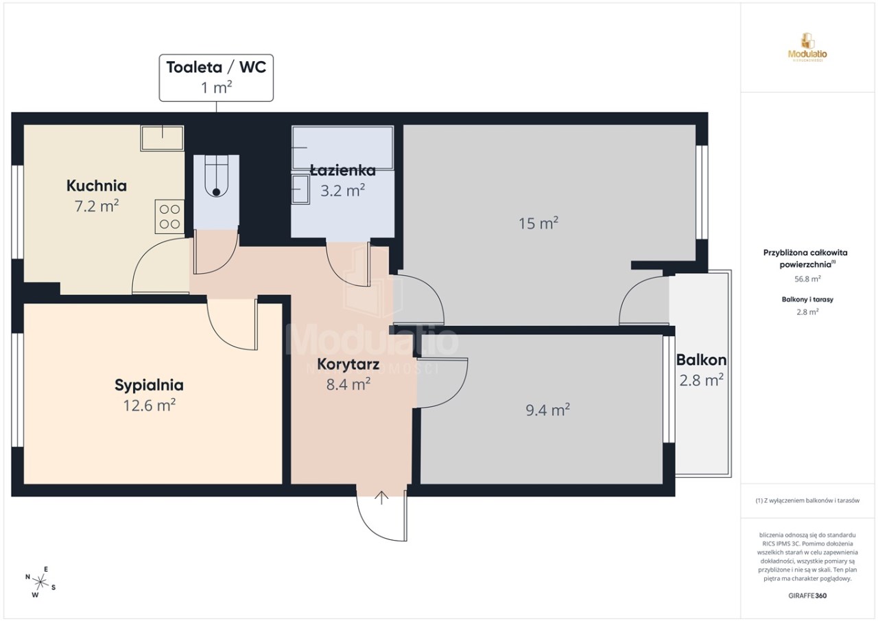 | Powierzchnia użytkowa [m2] | 57,60 m² |